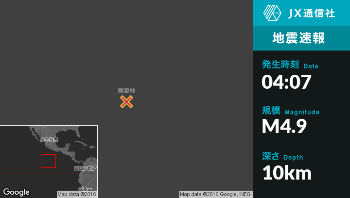 | 震源地 | フランスのClipperton Islandから東南東738kmの地点 |