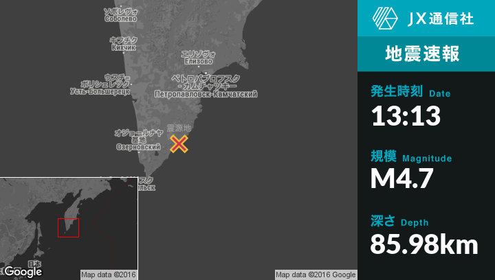 | 震源地 | ロシアのOzernovskiyから東北東93kmの地点 |