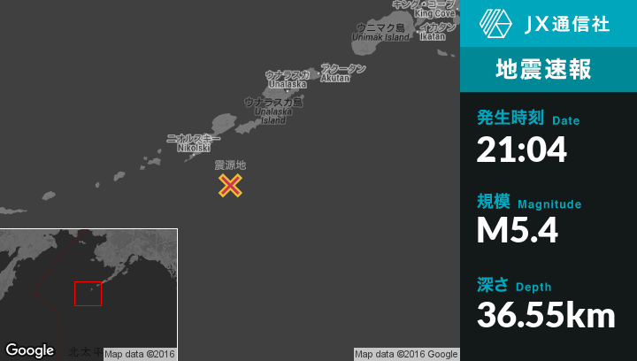 | 震源地 | アラスカのNikolskiから南東74kmの地点 |