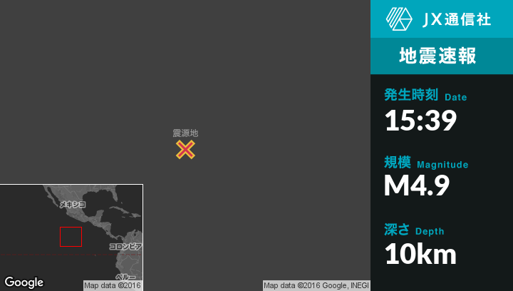 | 震源地 | フランスのClipperton Islandから東南東698kmの地点 |