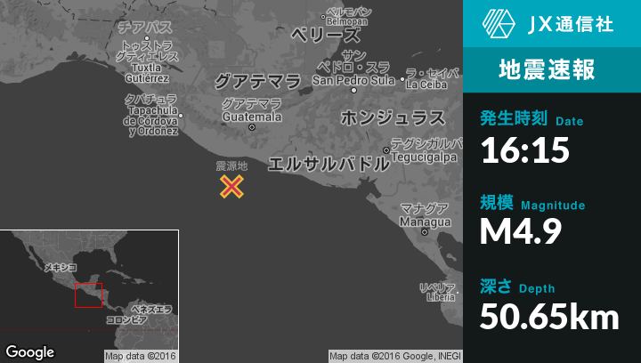 | 震源地 | グアテマラのPuerto San Joseから南南西69kmの地点 |
