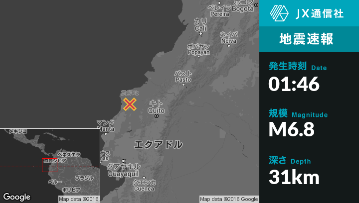 | 震源地 | エクアドルのRosa Zarateから北西24kmの地点 |