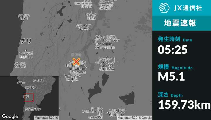 | 震源地 | アルゼンチンのAndalgalaから南南西50kmの地点 |