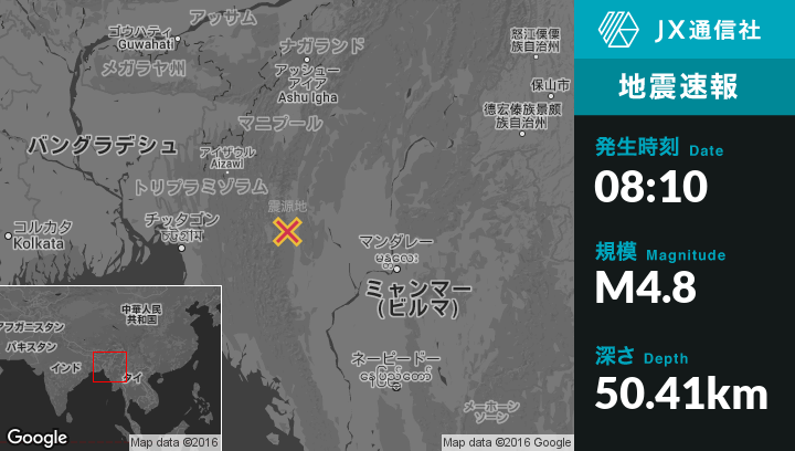 | 震源地 | ミャンマーのFalamから南東29kmの地点 |