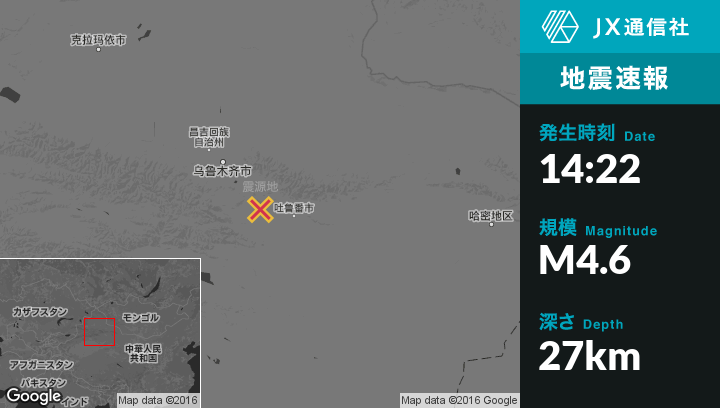 5月20日 14:22頃、中国のTurpanから西北西63kmの地点で地震がありました。