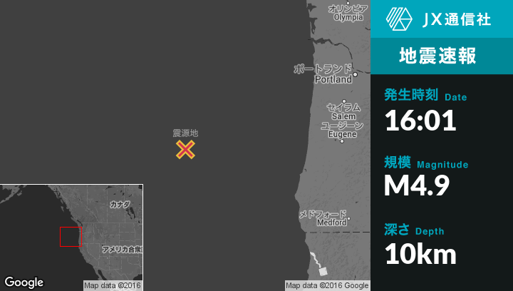 | 震源地 | オレゴン州のBandonから西北西298kmの地点 |