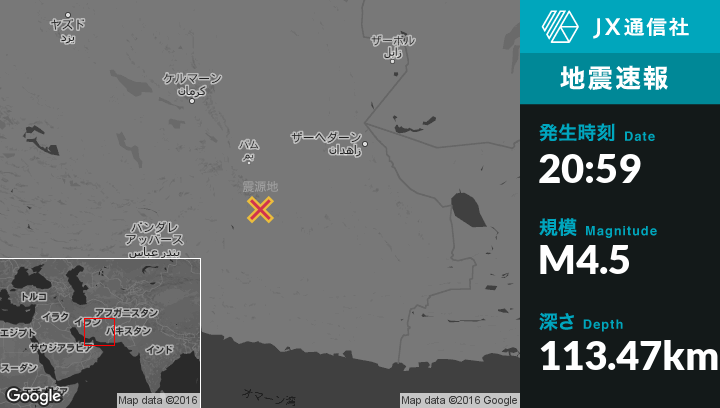 5月20日 20:59頃、イランのBamから南南東92kmの地点で地震がありました。