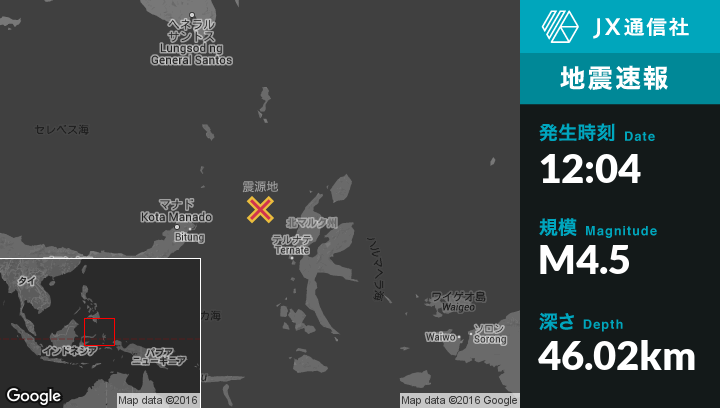 | 震源地 | インドネシアのTobeloから西152kmの地点 |
