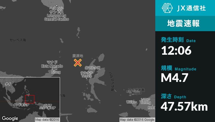 | 震源地 | インドネシアのTobeloから西北西148kmの地点 |