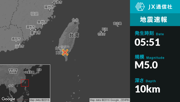 5月22日 05:51頃、台湾のPingtungから東北東21kmの地点で地震がありました。