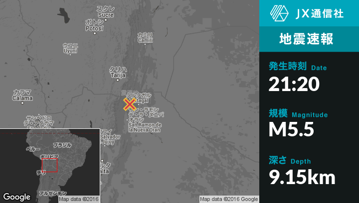 | 震源地 | アルゼンチンのTartagalから西北西44kmの地点 |
