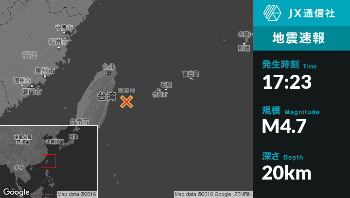 7月01日 17:23頃、台湾のHualianから東76kmの地点で地震がありました。