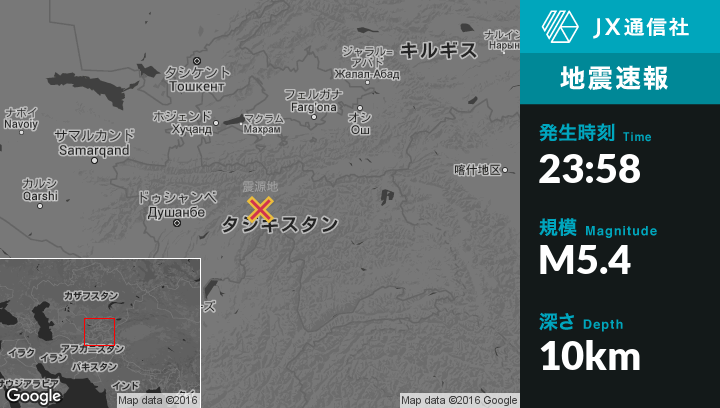 7月01日 23:58頃、タジキスタンのGharmから南東27kmの地点で地震がありました。