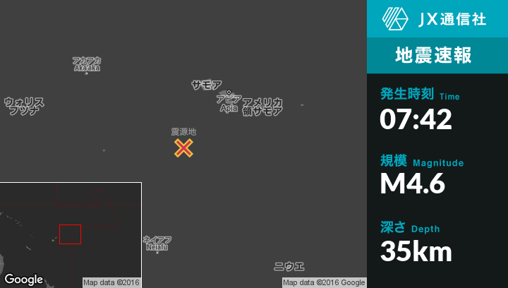 7月02日 07:42頃、トンガのHihifoから北東85kmの地点で地震がありました。