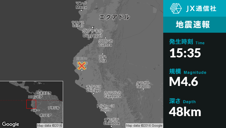 | 震源地 | ペルーのQuerecotilloから北北西12kmの地点 |