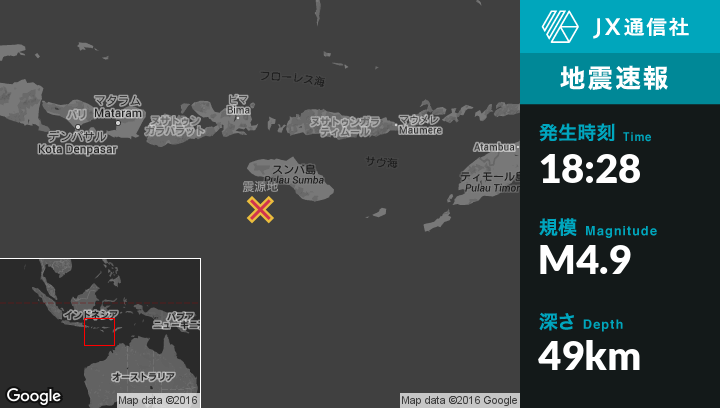 | 震源地 | インドネシアのBogorawatuから南65kmの地点 |
