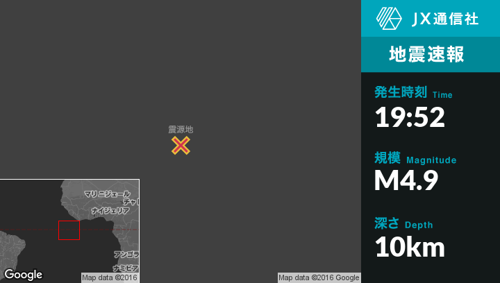 | 震源地 | リベリアのGreenvilleから南南西733kmの地点 |