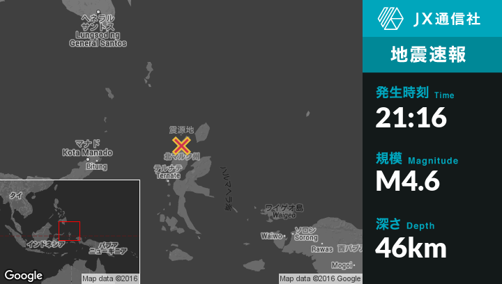 | 震源地 | インドネシアのTobeloから北西40kmの地点 |