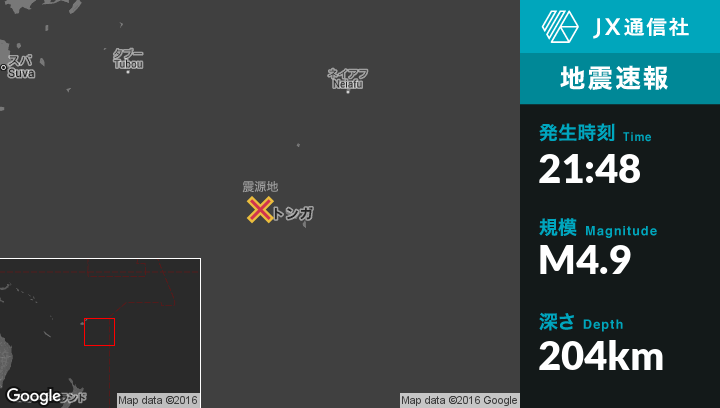 | 震源地 | トンガのHaveluから西北西76kmの地点 |