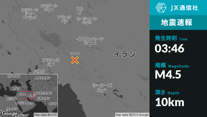 7月07日 03:46頃、イランのFarsanから南45kmの地点で地震がありました。