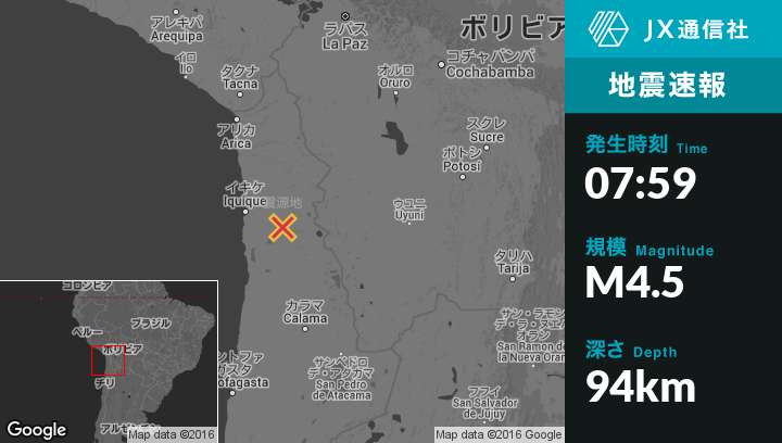 7月07日 07:59頃、チリのIquiqueから東南東81kmの地点で地震がありました。