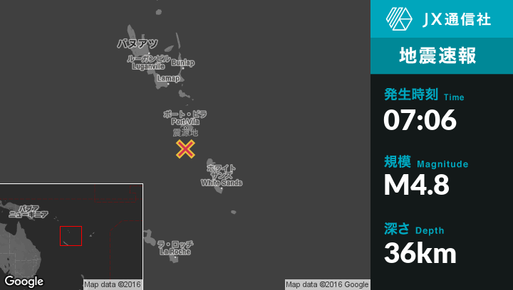 | 震源地 | バヌアツのPort-Vilaから南54kmの地点 |