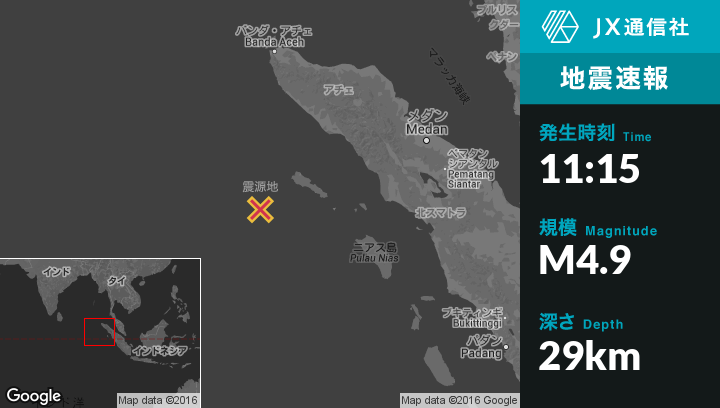 | 震源地 | インドネシアのSinabangから西南西154kmの地点 |