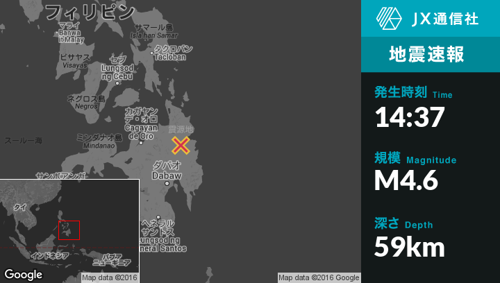 | 震源地 | フィリピンのBorbonから北北西0kmの地点 |