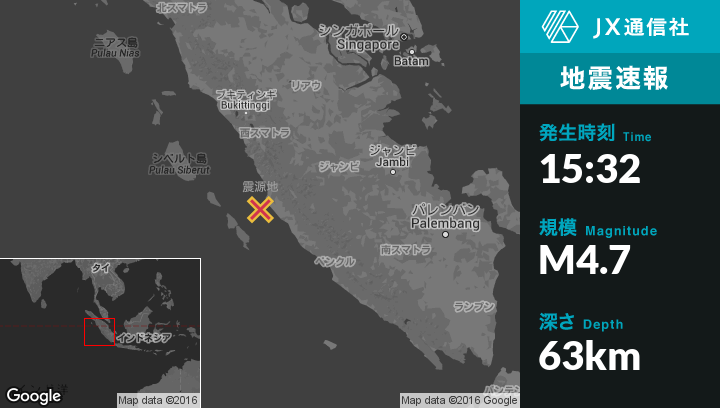 | 震源地 | インドネシアのSungaipenuhから西南西79kmの地点 |