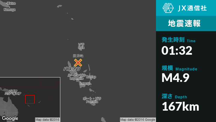 | 震源地 | バヌアツのPort-Olryから北北東49kmの地点 |