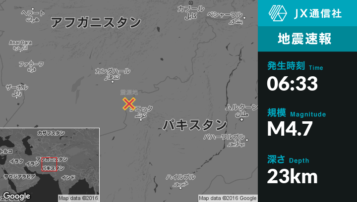 | 震源地 | パキスタンのChamanから南東2kmの地点 |