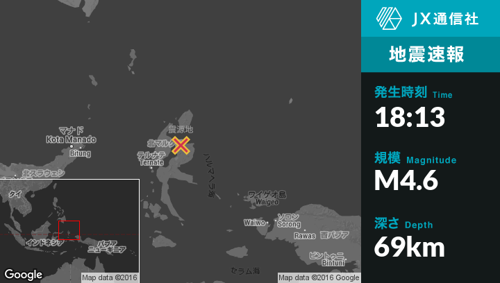 | 震源地 | インドネシアのTobeloから東南東35kmの地点 |