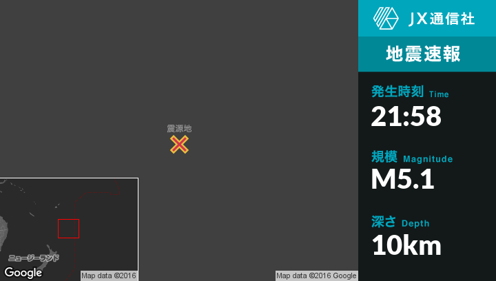 | 震源地 | ニュージーランドのRaoul Islandから東北東277kmの地点 |