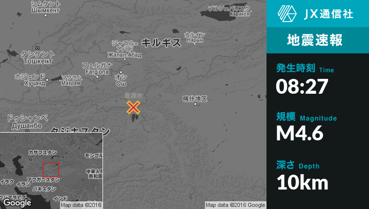| 震源地 | キルギスのSary-Tashから南南東30kmの地点 |
