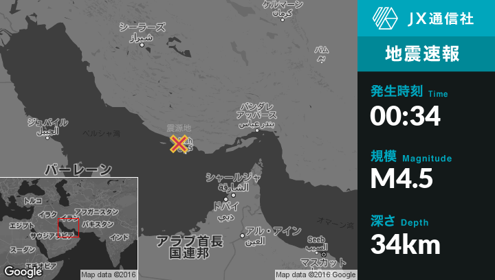 7月29日 00:34頃、イランのKishから北北西45kmの地点で地震がありました。