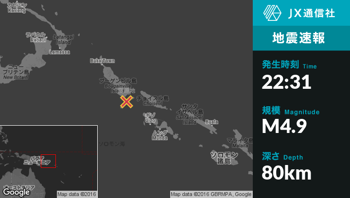 | 震源地 | パプア ニューギニア独立国のPangunaから南南東77kmの地点 |