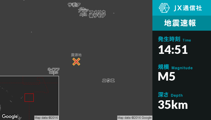 8月01日 14:51頃、トンガのNeiafuから東北東212kmの地点で地震がありました。