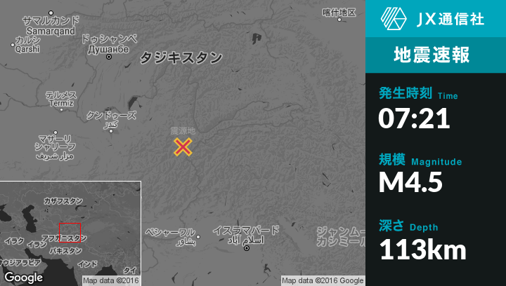 | 震源地 | アフガニスタンのAshkashamから南西48kmの地点 |