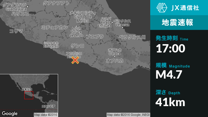 | 震源地 | メキシコのAcapulco de Juarezから東北東18kmの地点 |