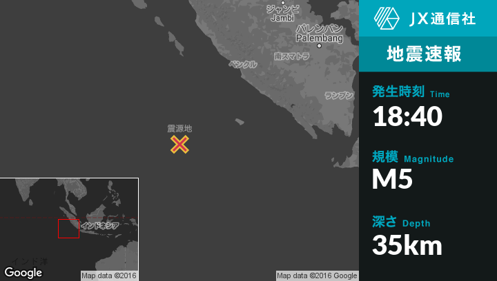 | 震源地 | インドネシアのBengkuluから南西322kmの地点 |