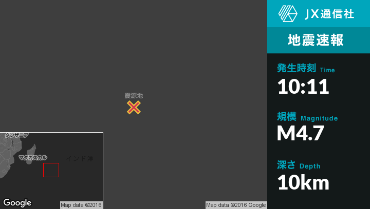| 震源地 | レユニオン島のSaint-Philippeから南南東1011kmの地点 |