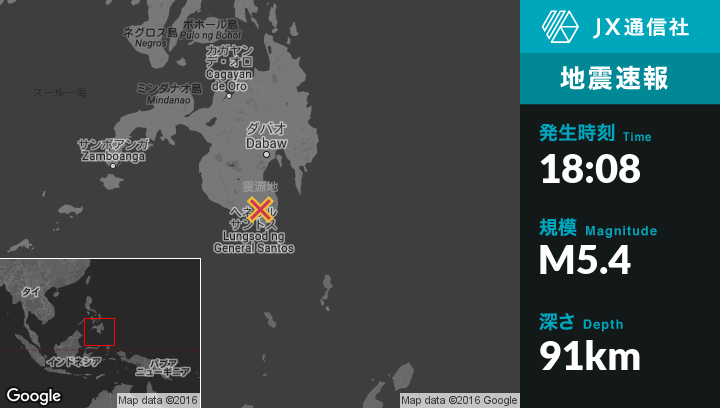 | 震源地 | フィリピンのAlabelから東南東3kmの地点 |