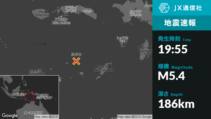 | 震源地 | インドネシアのSaumlakiから西北西250kmの地点 |