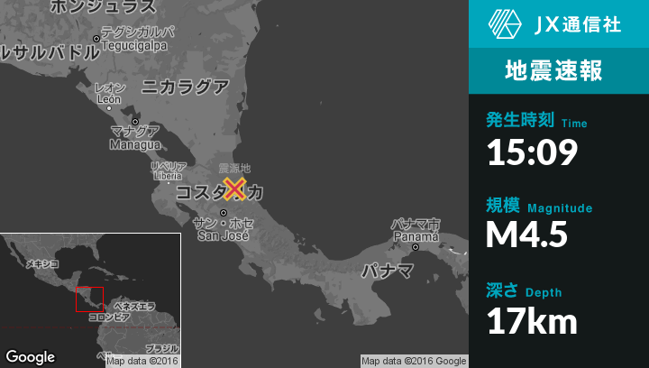 | 震源地 | コスタリカのRoxanaから北北西37kmの地点 |