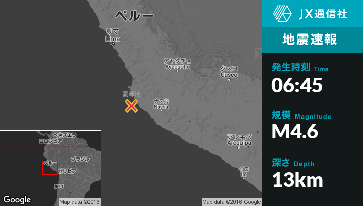 | 震源地 | ペルーのSantiagoから西南西66kmの地点 |