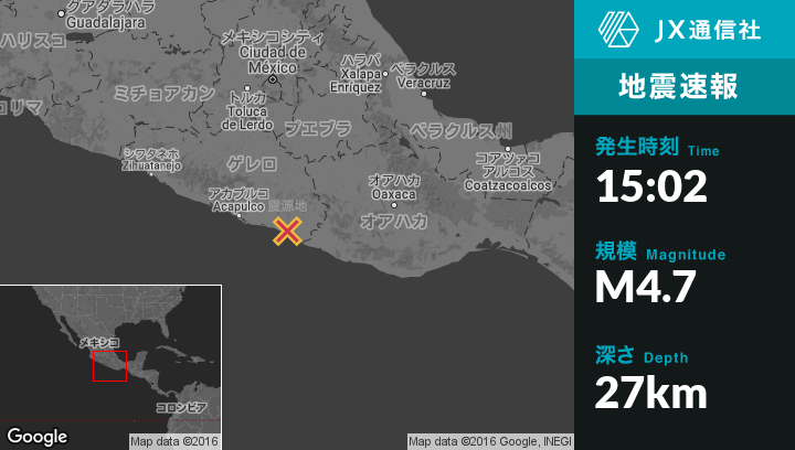 | 震源地 | メキシコのMarqueliaから北北西11kmの地点 |