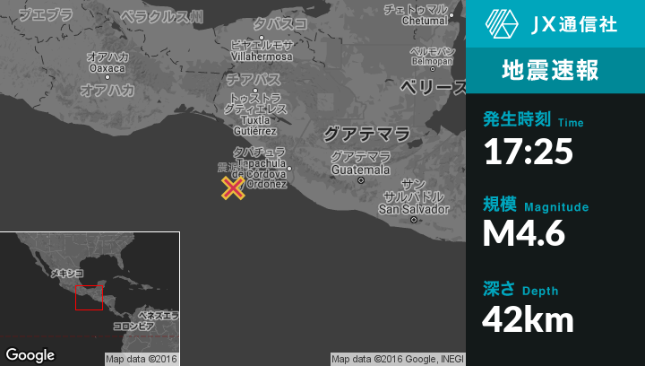| 震源地 | メキシコのMapastepecから南西124kmの地点 |