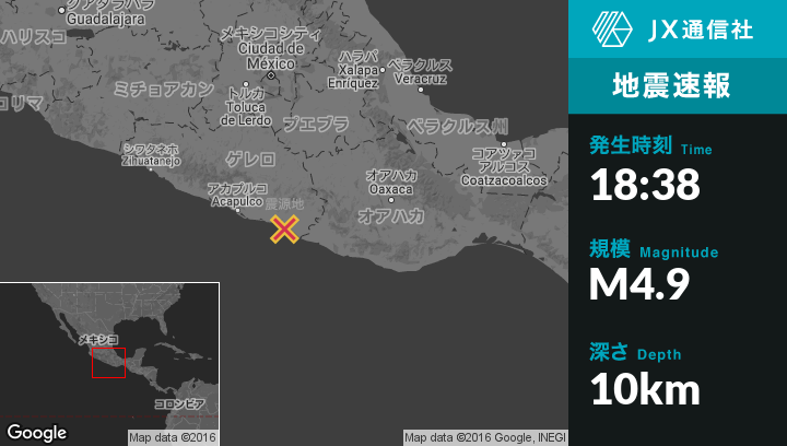 | 震源地 | メキシコのMarqueliaから西北西8kmの地点 |