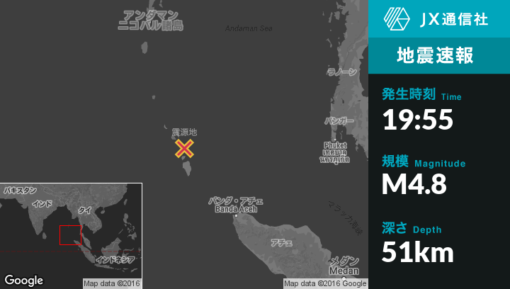 8月11日 19:55頃、インドのMoheanから東南東51kmの地点で地震がありました。