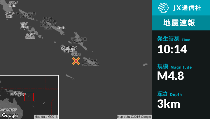 | 震源地 | ソロモン諸島のHoniaraから南東132kmの地点 |